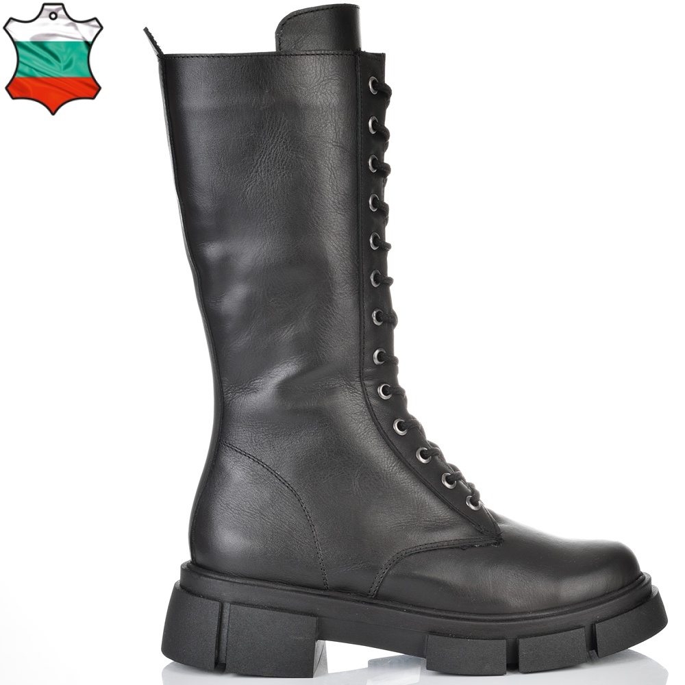 ДАМСКИ БОТУШИ С ВРЪЗКИ ОТ ЕСТЕСТВЕНА КОЖА-2401-1518-ЧЕРНИ