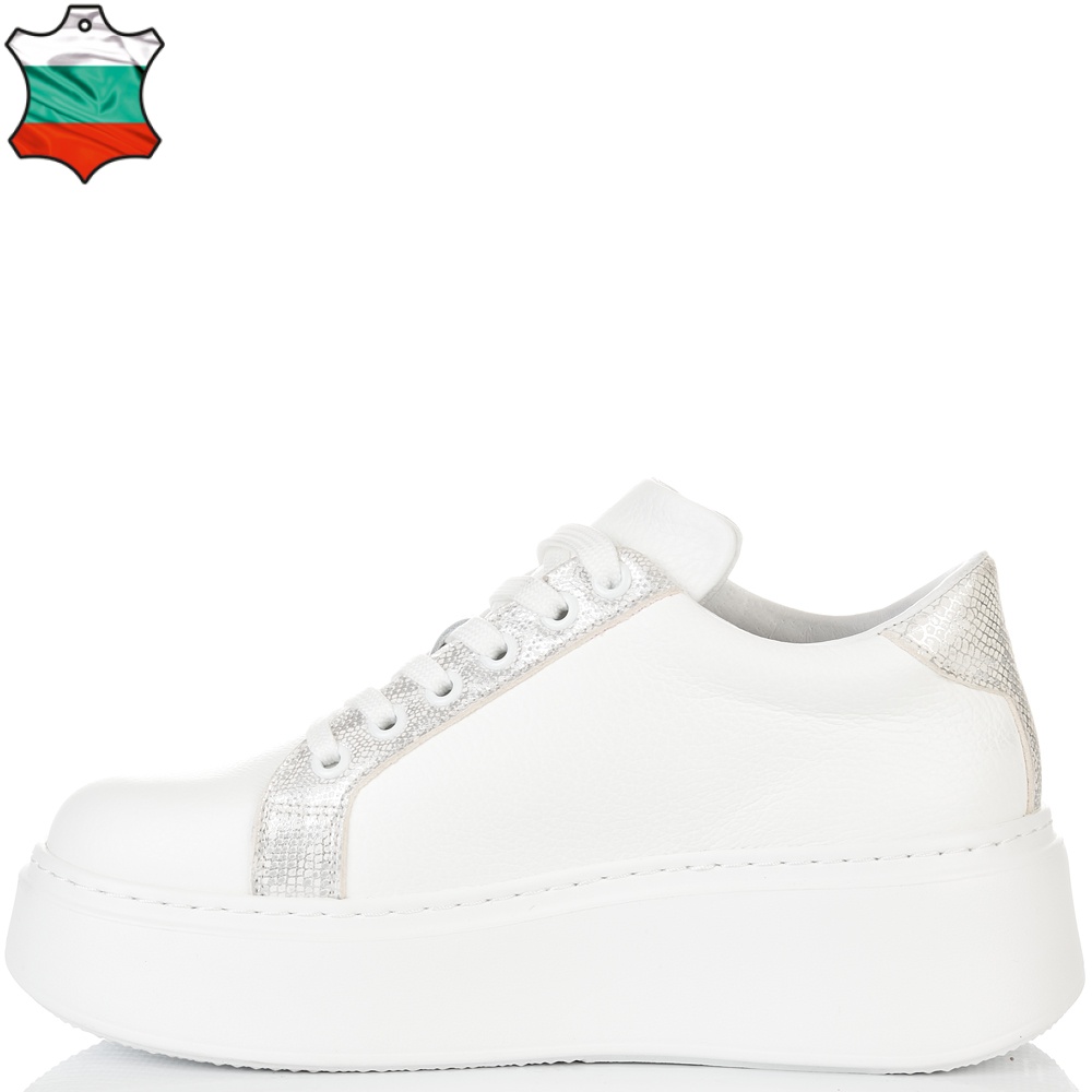 ДАМСКИ КЕЦОВЕ ОТ ЕСТЕСТВЕНА КОЖА-7073-БЯЛО/СРЕБЪРНО