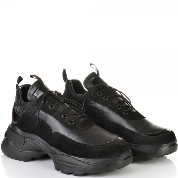 В нежно съчетание на черна напа с ефектна кожа с животински
