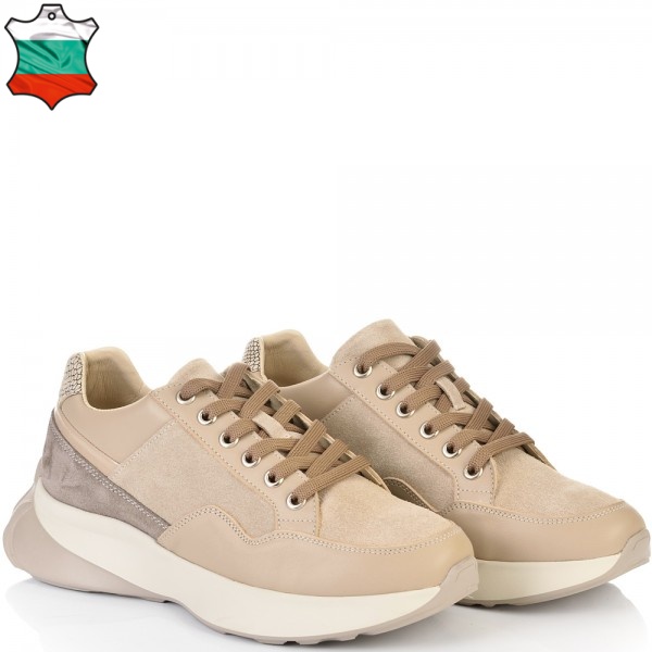 Стлни и нежни кецове в съчетание на различни варианти естествена кожа и велур в бежовата цветова гама на бежово ходило. Моделът ще допринесе завършеност и стил във вашата визия. Вътрешната част на модела също е изцяло от естествена кожа, а стелката е Footbed, която е изключително мека и се оформя по стъпалото на принципа на мемори пяна. В допълнение моделът е с олекотено полиуретаново ходило, шито и лепено, което перфектно допълва комфорта на модела и следва естествената линия на движение на краката.