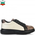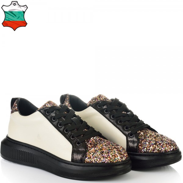 Зашеметяващи кецове с ефектен брокат в различни цветове, в нежно съчетание на бежова и черна естествена кожа. Блясъкът винаги е на мода, а с тези кецове просто ще заблестите. Вътрешната част на модела също е изцяло от естествена кожа, а стелката е Footbed, която е изключително мека и се оформя по стъпалото на принципа на мемори пяна. В допълнение моделът е с олекотено полиуретаново ходило, шито и лепено, което перфектно допълва комфорта на модела и следва естествената линия на движение на краката. С тях ще бъдете просто неотразима.