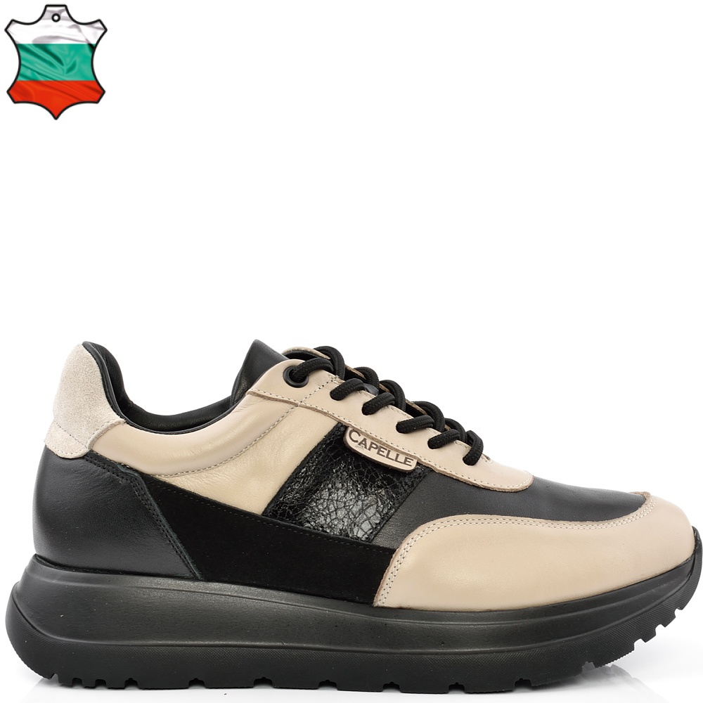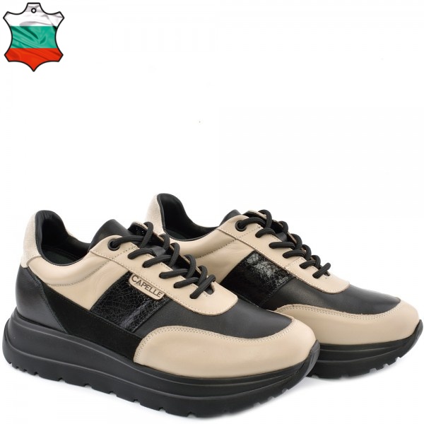 ДАМСКИ КЕЦОВЕ ОТ ЕСТЕСТВЕНА КОЖА-OMEGA-6065-БЕЖОВО/ЧЕРНИ