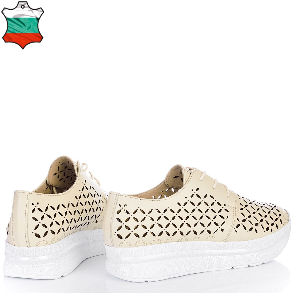 Дамски обувки на цялостна платформа с лазерна перфорация в