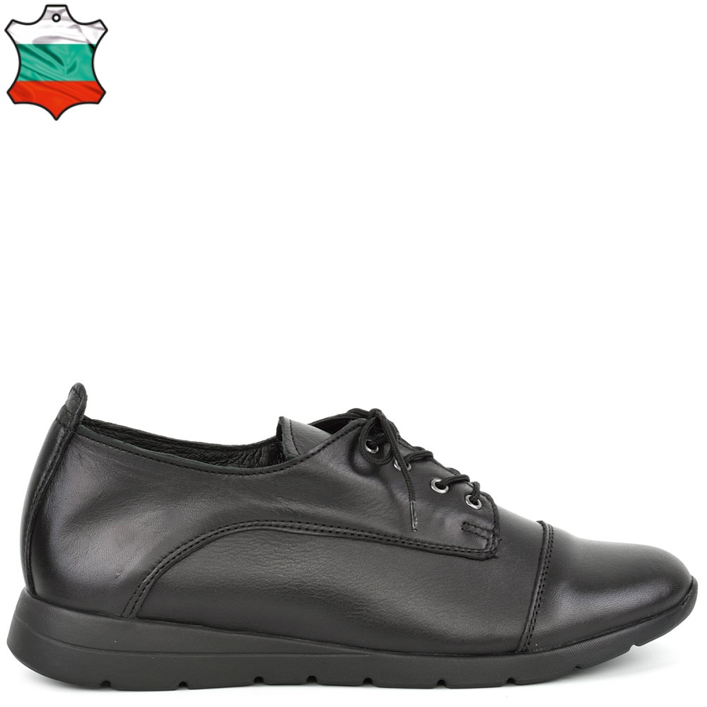 Дамски обувки от естествена кожа в черен цвят. Висококачествената естествена кожа и перфектната изработка, придават стил и елегантност на модела. Тези обувки са подходящи за ежедневието, защото лесно се съчетава с много тоалети от рокли и поли, до дънки и панталони. Ходилото следва естествената линия и движения на походката.