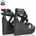 ДАМСКИ САНДАЛИ НА ПЛАТФОРМА ОТ ЕСТЕСТВЕНА КОЖА-4489-ЕФЕКТНИ-ЧЕРНИ