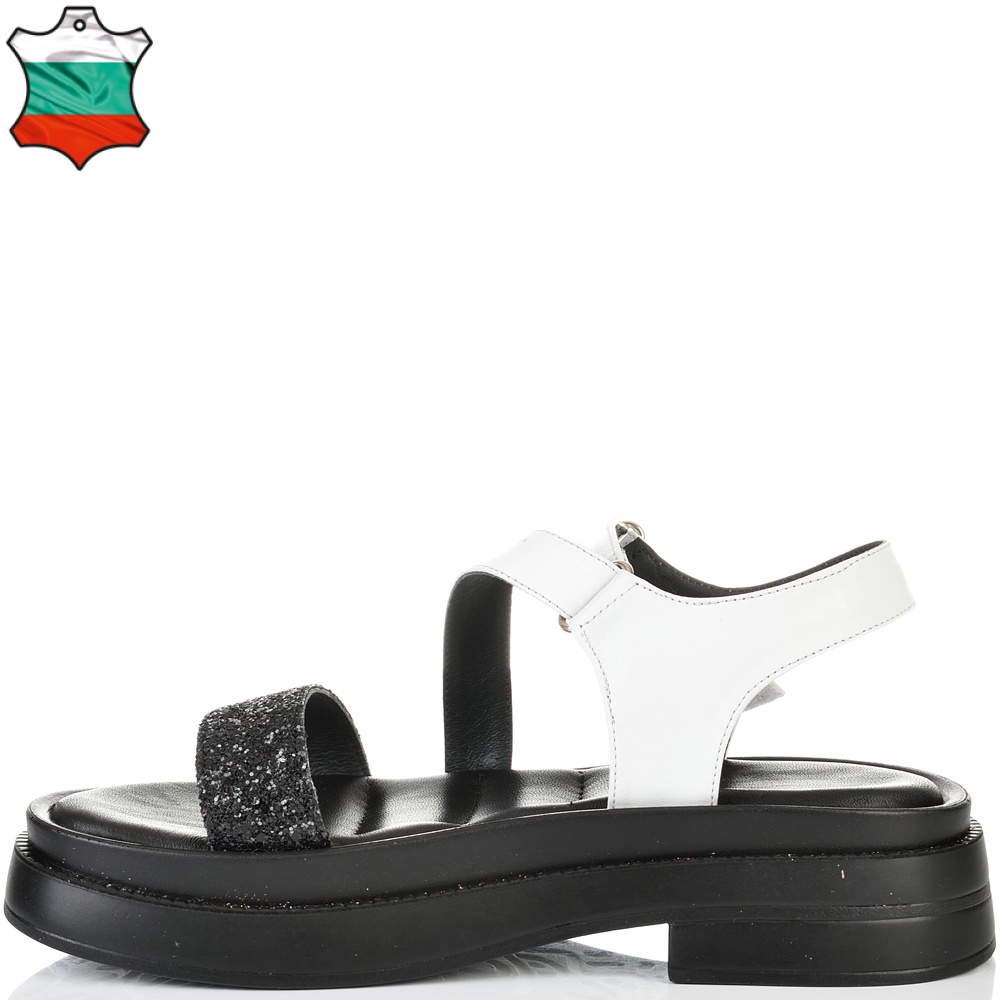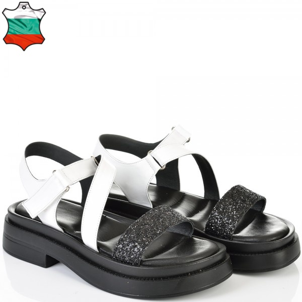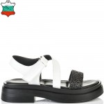 ДАМСКИ САНДАЛИ ОТ ЕСТЕСТВЕНА КОЖА И БРОКАТ-6008A-ЧЕРНО/БЯЛО