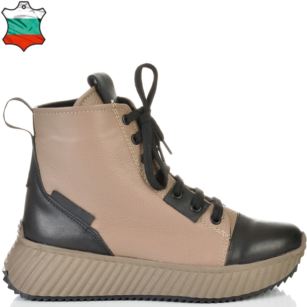 ДАМСКИ СПОРТНИ БОТИ ОТ ЕСТЕСТВЕНА КОЖА-060-1567-БЕЖОВО/ЧЕРНО