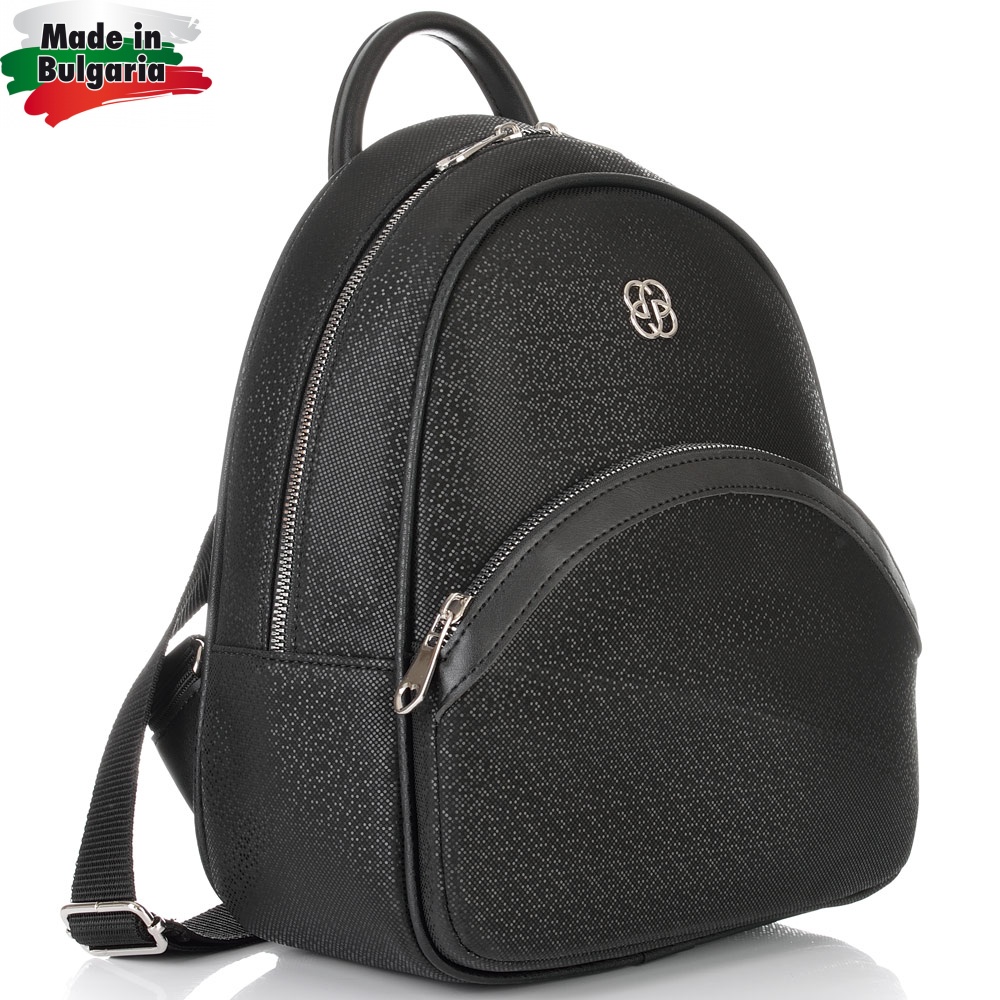 БЪЛГАРСКА ДАМСКА РАНИЦА-S1316-ЕФЕКТНА КОЖА-ЧЕРНА