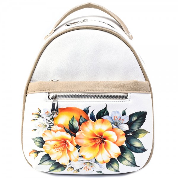 БЪЛГАРСКА ДАМСКА РАНИЦА-S1334-БЯЛА С ЖЪЛТИ ЦВЕТЯ