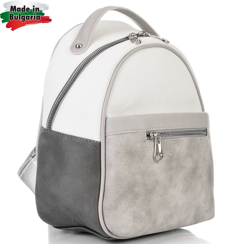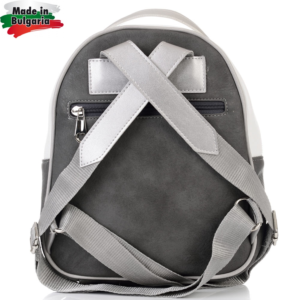 БЪЛГАРСКА ДАМСКА РАНИЦА-S1334-СИВО/БЯЛО