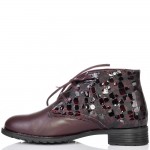 Дамски кларкове от естествена кожа в цвят бордо, с кожени връзки и ефектна кожа. Вътрешната част на модела е с тънък, мек и топъл хастар. Ходилото е каучук и е изключително стабилно и не се пързаля на заледени и заснежени участъци. Този модел е перфектният избор за Вашата ежедневна визия