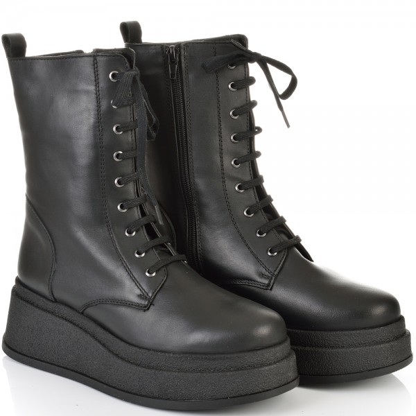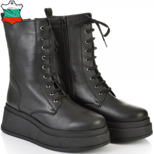 ДАМСКИ БОТИ НА ПЛАТФОРМА ОТ ЕСТЕСТВЕНА КОЖА-TMS 036-1554-ЧЕРНИ