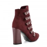 Български дамски боти от велур и еко кожа на висок и стабилен ток с каишки в черен цвят. Моделът е л..