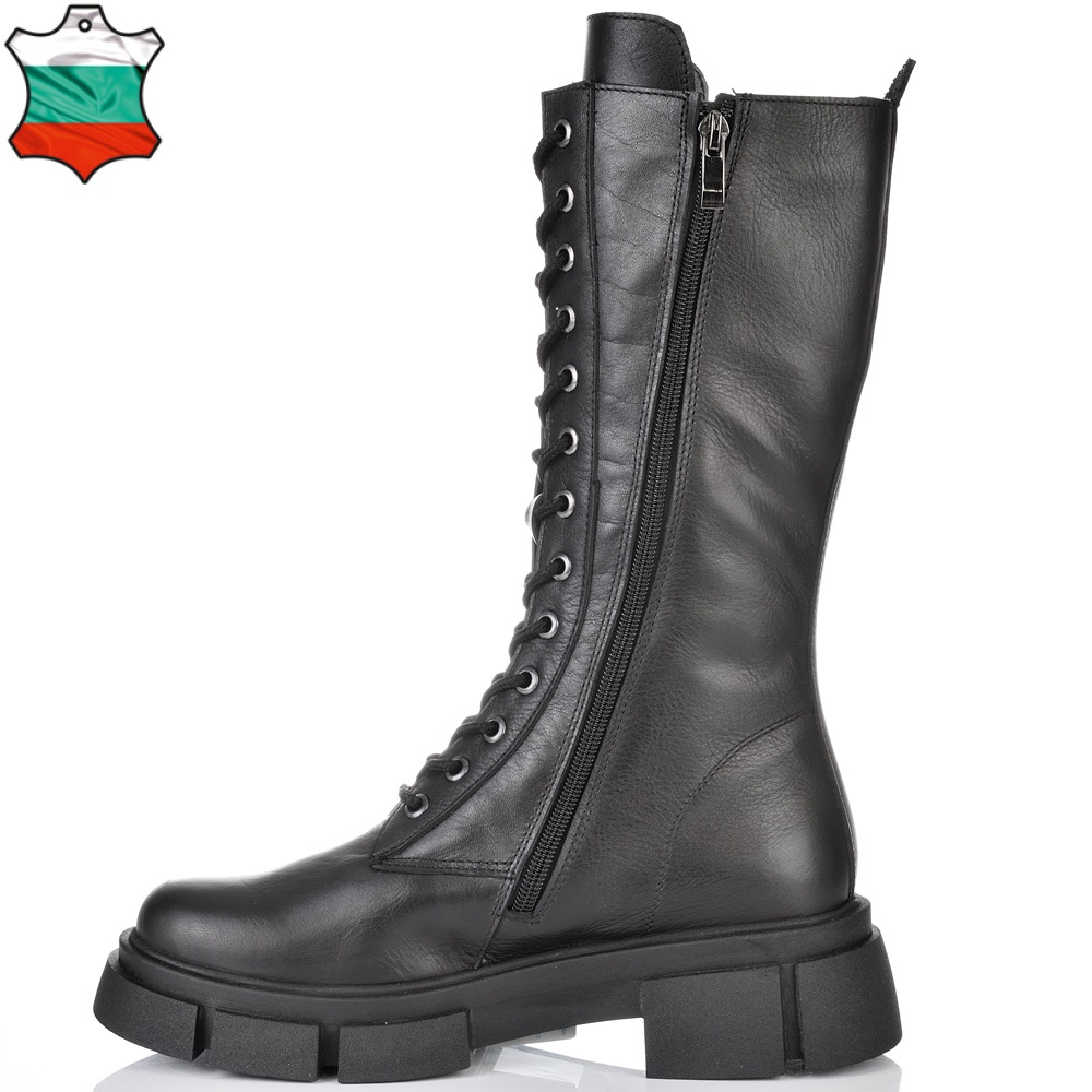 ДАМСКИ БОТУШИ С ВРЪЗКИ ОТ ЕСТЕСТВЕНА КОЖА-2401-1518-ЧЕРНИ