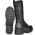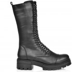 дамски ботуши от естествена кожа в класическо черно с ефектни връзки. Моделът е