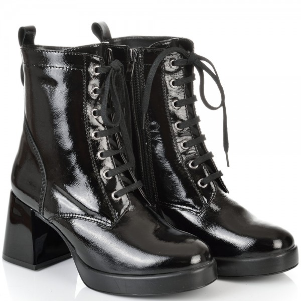 ДАМСКИ ЕЛЕГАНТНИ БОТИ НА ТОК ОТ ЕСТЕСТВЕН ЛАК-JANET4-1356-ЧЕРНИ