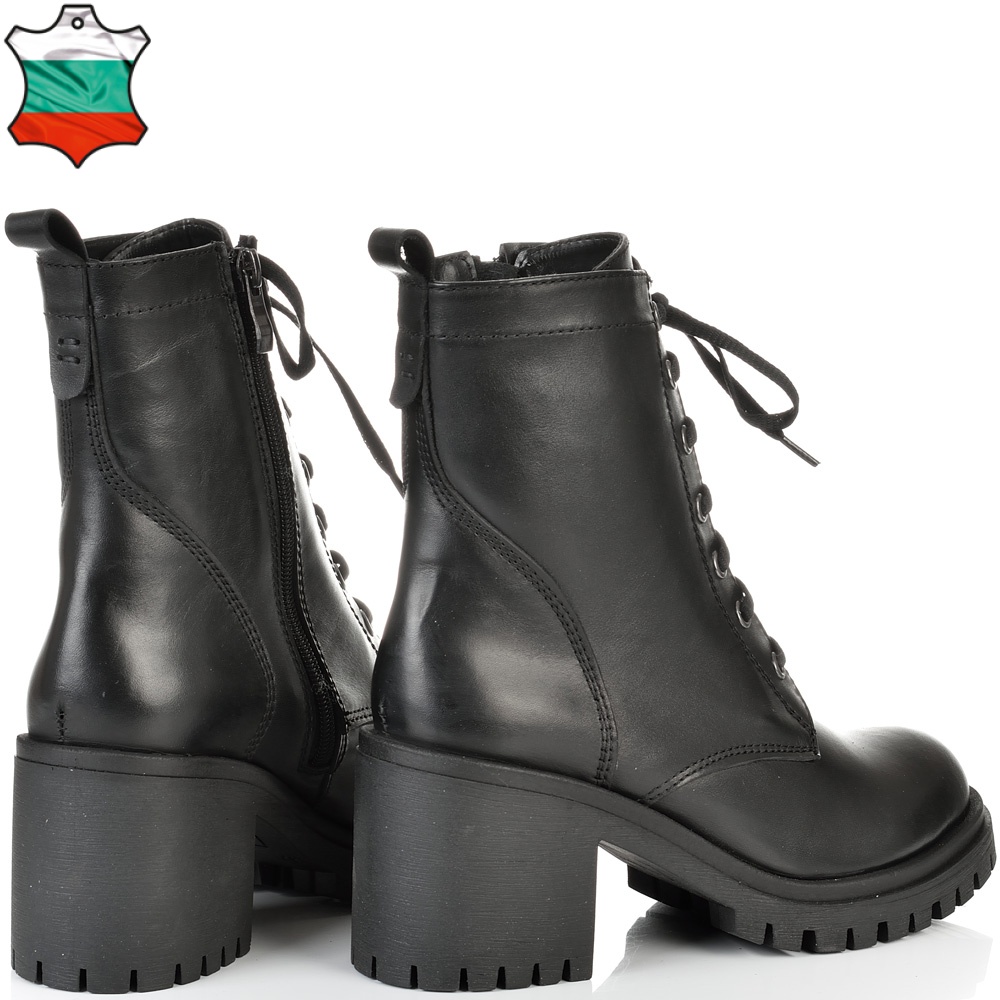 ДАМСКИ ЕЛЕГАНТНИ БОТИ НА ТОК ОТ ЕСТЕСТВЕНА КОЖА-23923-1356-ЧЕРНИ
