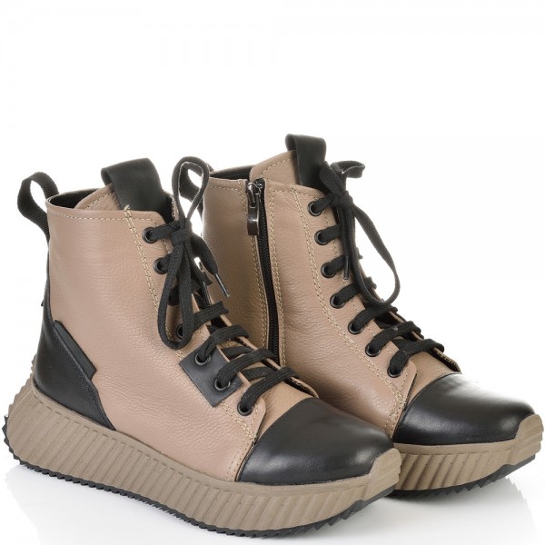 ДАМСКИ СПОРТНИ БОТИ ОТ ЕСТЕСТВЕНА КОЖА-060-1567-БЕЖОВО/ЧЕРНО