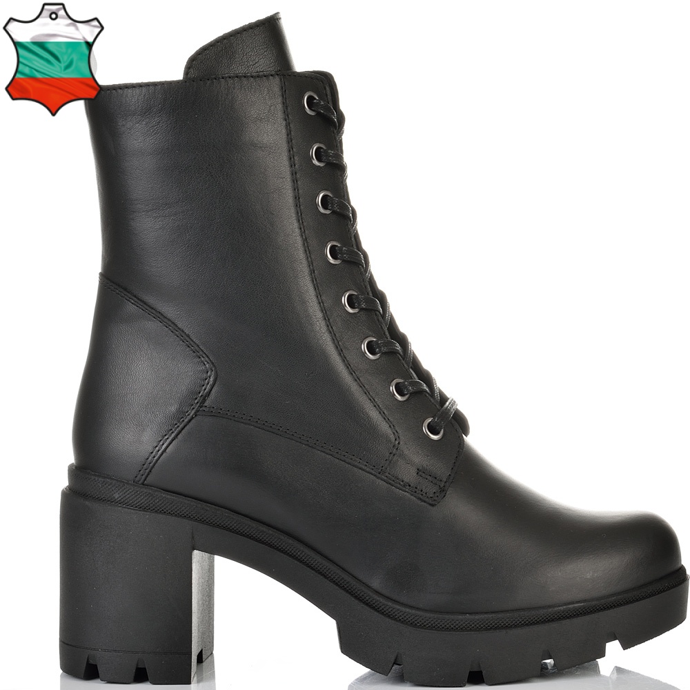 Класически дамски боти на дебел ток в черен цвят. Кожата на