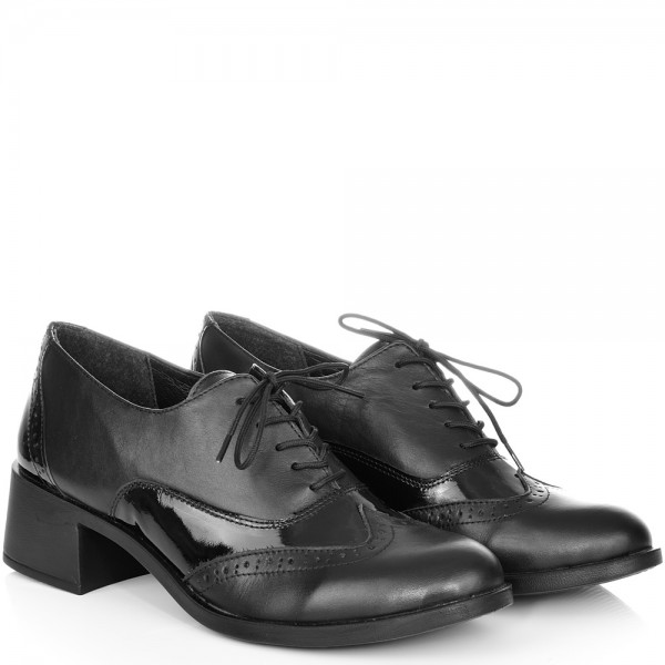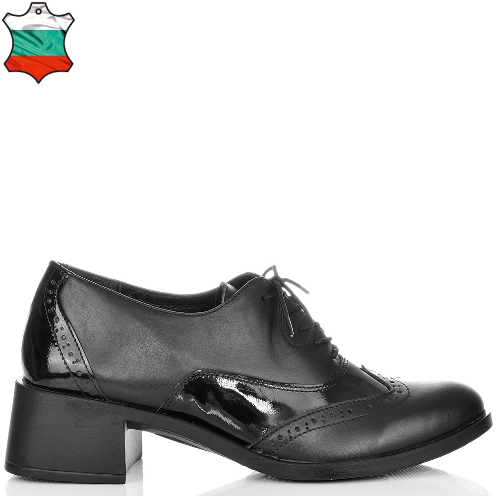 ДАМСКИ ОБУВКИ НА ТОК ОТ ЕСТЕСТВЕНА КОЖА И ЛАК-C362-663-ЧЕРНИ