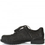 Класически модел дамски обувки с връзки на лек ток в ефектна черна кожа. Страхотен модел за сезона изключително стилен и удобен с тях ще се чувствате неотразима. Лесно се съчетава с всякакави тоалети и е подходящ както за ежедневието така и за официални случаи и поводи. Стелката на модела е с три меки и анатомични зони – пета, свод и възглавничка. Моделът е много лек, защото е изработен от олекотено и гъвкаво ходило, което следва естествената линия на движение на походката.