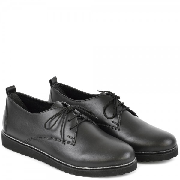 Дамски обувки от естествена кожа във вечно модерния и класически черен цвят. Висококачествената естествена кожа и перфектната изработка, придават стил и елегантност на модела. Тези обувки са подходящи за ежедневието, защото лесно се съчетава с много тоалети от рокли и поли, до дънки и панталони. И накрая, но не на последно място обувките са с мека стелка, а ходилото следва естествената линия и движения на походката.