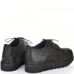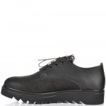 Дамски ежедневни обувки с връзки и дантела на езика в страхотна ефектна черна кожа. Моделът изключително стилен и удобен и лесно се съчетава с всякакъв тип тоалети. Стелката е мека и се оформя по стъпалото на принципа на мемори пяна. Моделът е много лек, защото е изработен от олекотено полиуретаново ходило, което следва естествената линия на движение на походката.