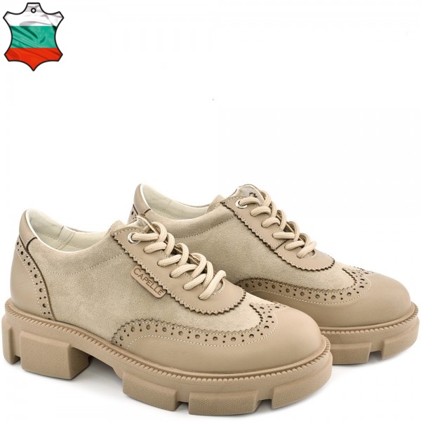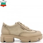ДАМСКИ ОБУВКИ ОТ ЕСТЕСТВЕНА КОЖА С ВЕЛУР-6060-БЕЖОВИ