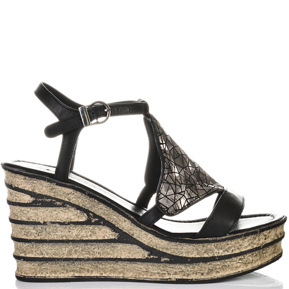 ДАМСКИ САНДАЛИ НА ПЛАТФОРМА ОТ ЕСТЕСТВЕНА КОЖА-4172-ЧЕРНИ