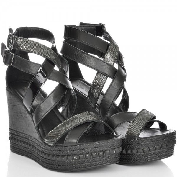 ДАМСКИ САНДАЛИ НА ПЛАТФОРМА ОТ ЕСТЕСТВЕНА КОЖА-4489-ЕФЕКТНИ-ЧЕРНИ