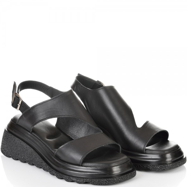 ДАМСКИ САНДАЛИ НА ПЛАТФОРМА ОТ ЕСТЕСТВЕНА КОЖА-5095-ЧЕРНИ