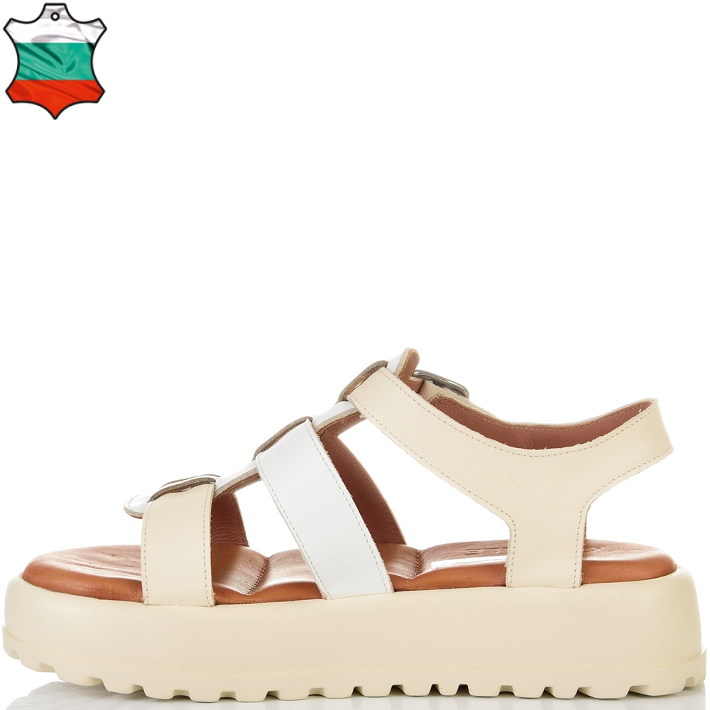 ДАМСКИ САНДАЛИ НА ПЛАТФОРМА ОТ ЕСТЕСТВЕНА КОЖА-7002-199-БЕЖОВО/БЕЛИ