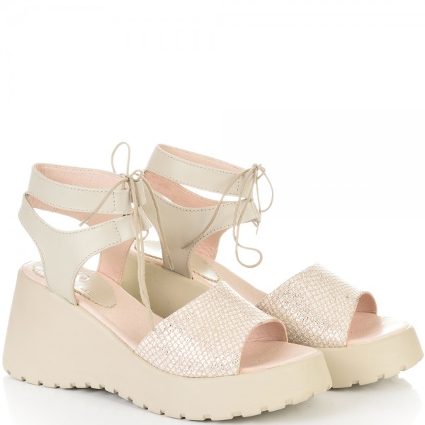 ДАМСКИ САНДАЛИ НА ПЛАТФОРМА ОТ ЕСТЕСТВЕНА КОЖА И ВРЪЗКИ-236503-1592-БЕЖОВИ