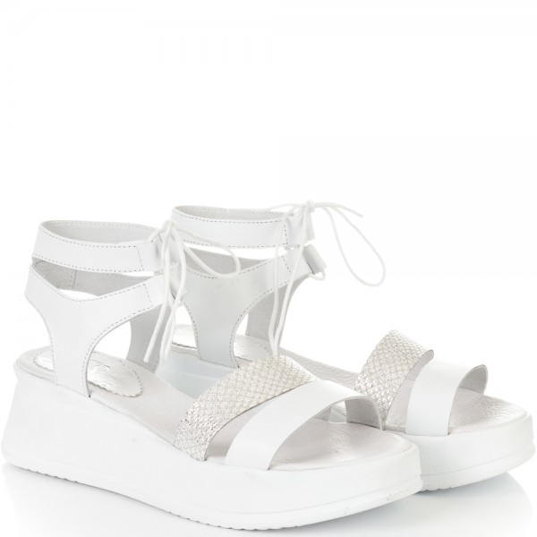 ДАМСКИ САНДАЛИ НА ПЛАТФОРМА С ВРЪЗКИ ОТ ЕСТЕСТВЕНА КОЖА-236162-1178-БЕЛИ