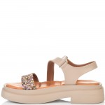 ДАМСКИ САНДАЛИ ОТ ЕСТЕСТВЕНА КОЖА И БРОКАТ-6008A-БЕЖОВИ