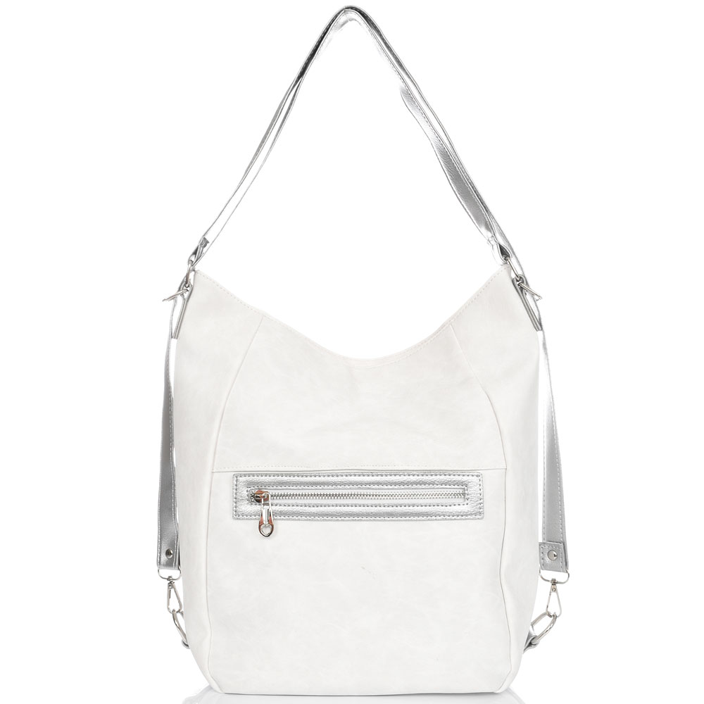 БЪЛГАРСКА ДАМСКА ЧАНТА/РАНИЦА-S1260-БЯЛО/СРЕБЪРНО