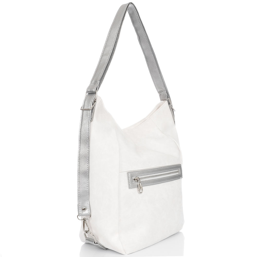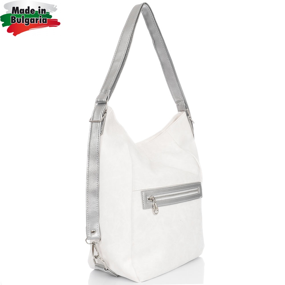 БЪЛГАРСКА ДАМСКА ЧАНТА/РАНИЦА-S1260-БЯЛО/СРЕБЪРНО