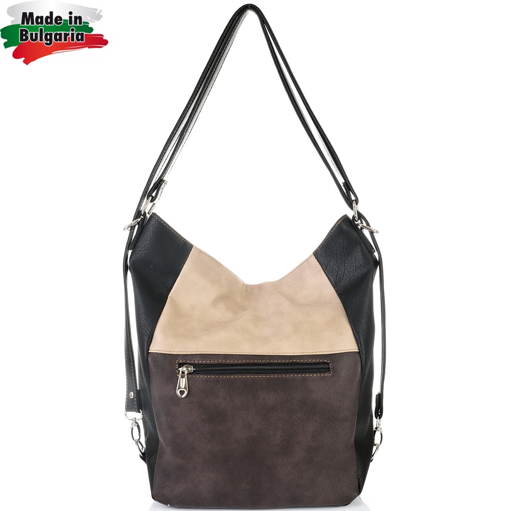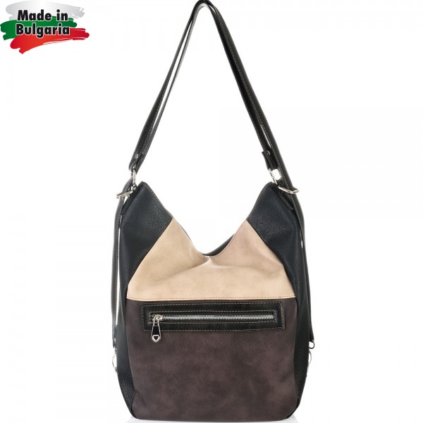 БЪЛГАРСКА ДАМСКА ЧАНТА/РАНИЦА-S1260-ЧЕРНО/КАФЯВО/БЕЖОВО