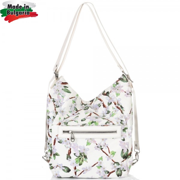 БЪЛГАРСКА ДАМСКА ЧАНТА/РАНИЦА-S1260-ЦВЕТЯ/БЯЛА