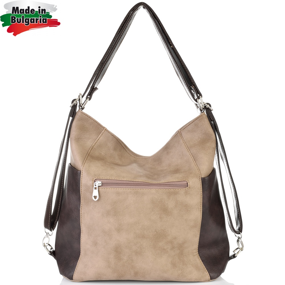 БЪЛГАРСКА ДАМСКА ЧАНТА/РАНИЦА-S1317-БЕЖОВО/КАФЯВО
