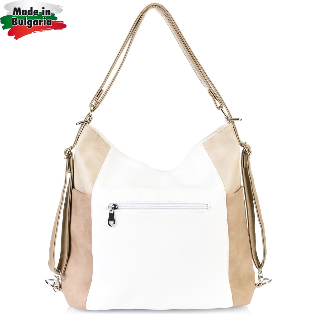 БЪЛГАРСКА ДАМСКА ЧАНТА/РАНИЦА-S1317-БЯЛО/БЕЖОВО