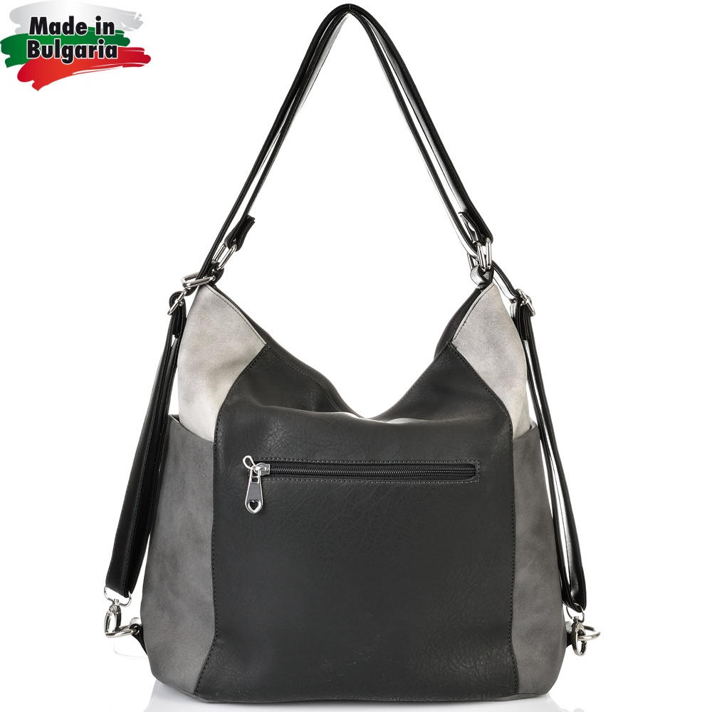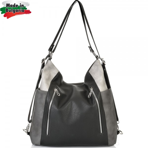 БЪЛГАРСКА ДАМСКА ЧАНТА/РАНИЦА-S1317-ЧЕРНО/СИВО