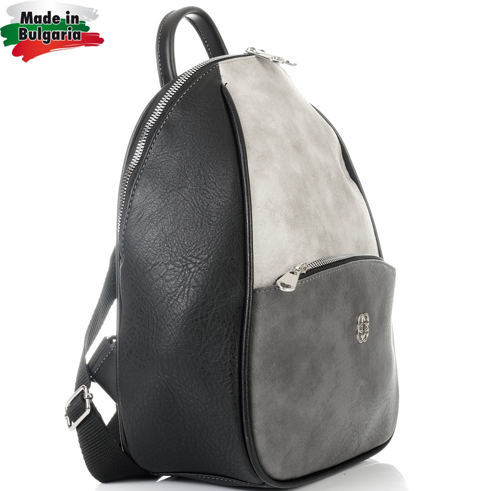 БЪЛГАРСКА ДАМСКА РАНИЦА-S1323-ЧЕРНО/СИВО