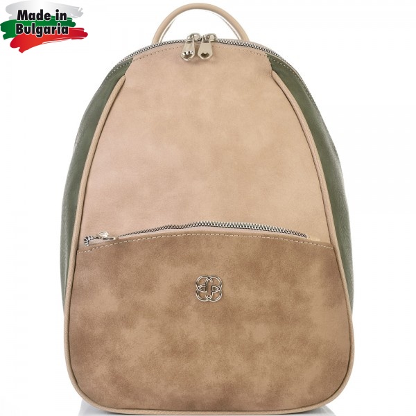 БЪЛГАРСКА ДАМСКА РАНИЦА-S1323-ЗЕЛЕНО/БЕЖОВО