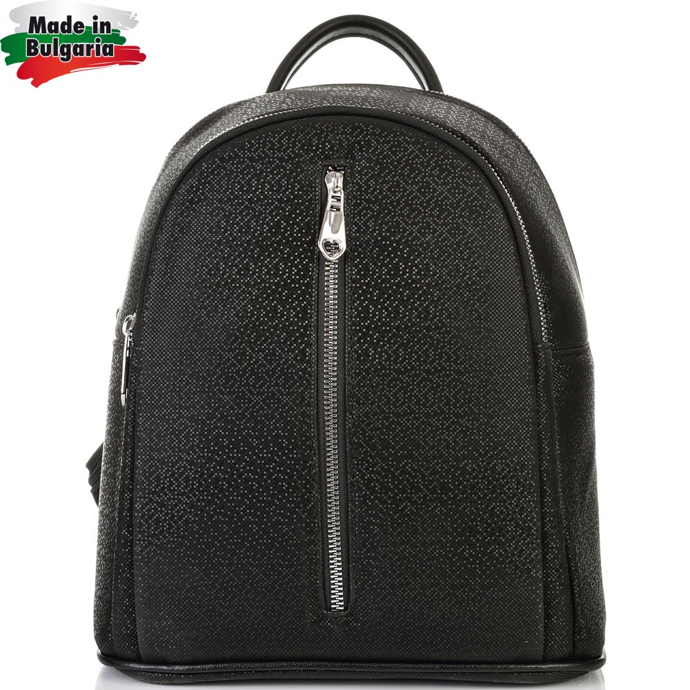 БЪЛГАРСКА ДАМСКА РАНИЦА-S1332-ЕФЕКТНА КОЖА-ЧЕРНА