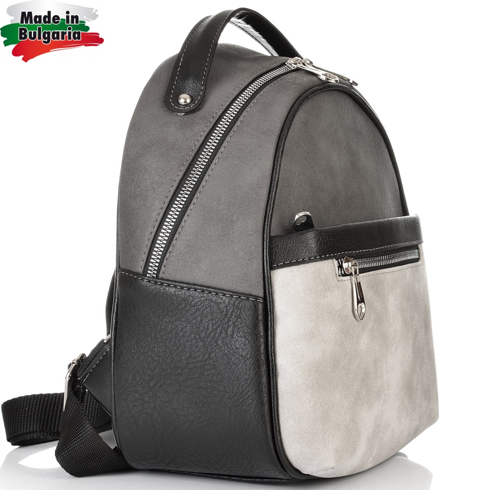 БЪЛГАРСКА ДАМСКА РАНИЦА-S1334-ЧЕРНО/СИВО
