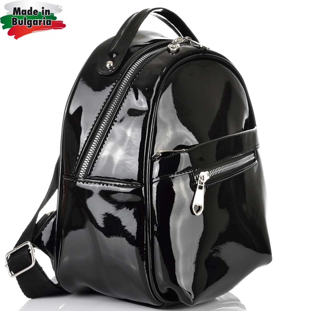 БЪЛГАРСКА ДАМСКА РАНИЦА-S1334-ЛАК-ЧЕРНА