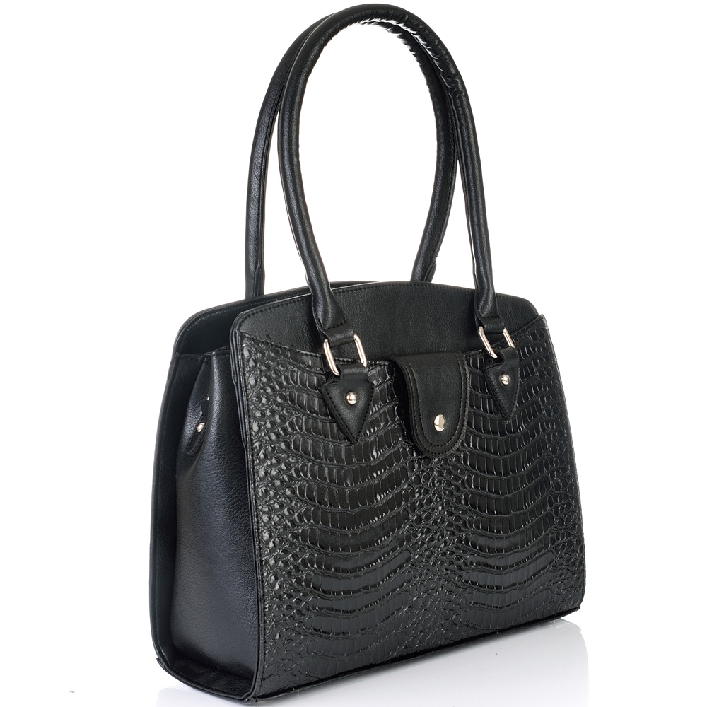ДАМСКА ЧАНТА-S1337-КРОКО-ЧЕРНА