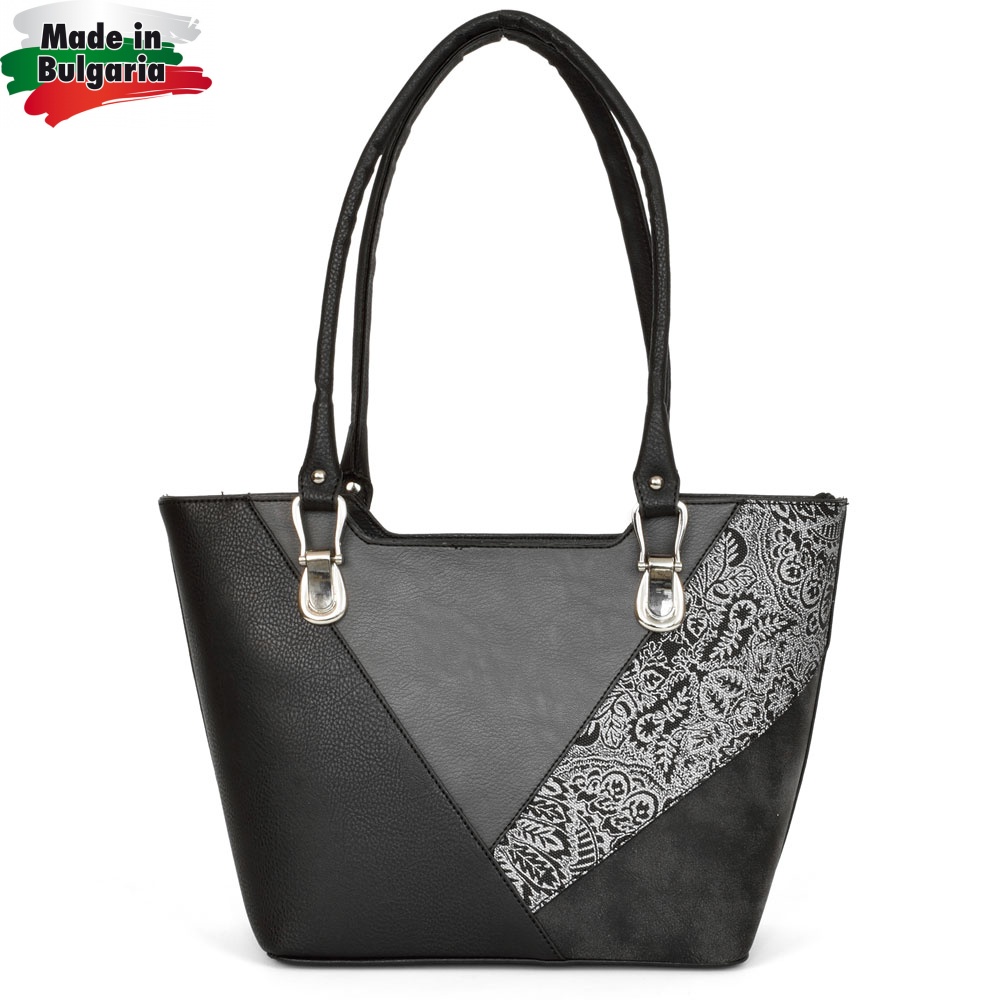 ДАМСКА ЧАНТА-T2643-ЧЕРНО/СИВО