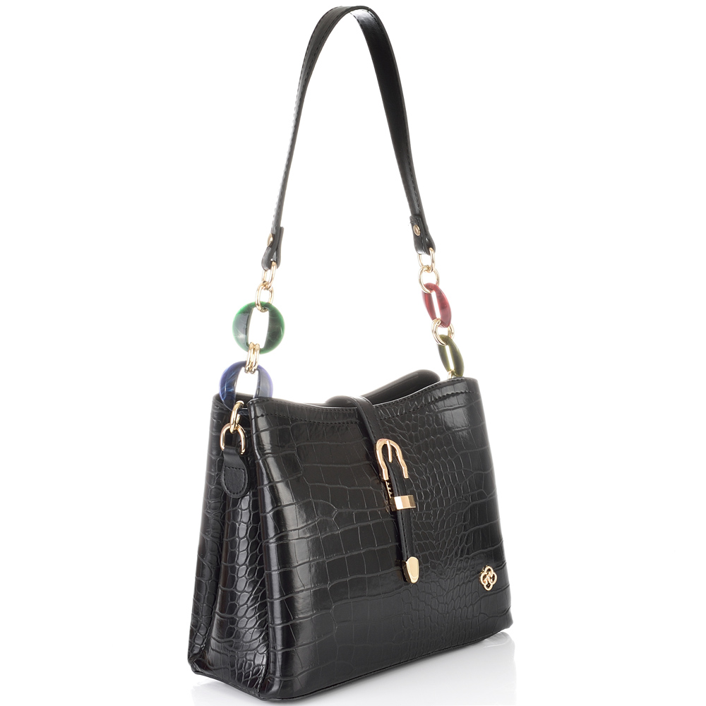 ДАМСКА ЕЛЕГАНТНА ЧАНТА-525-КРОКО-ЧЕРНА